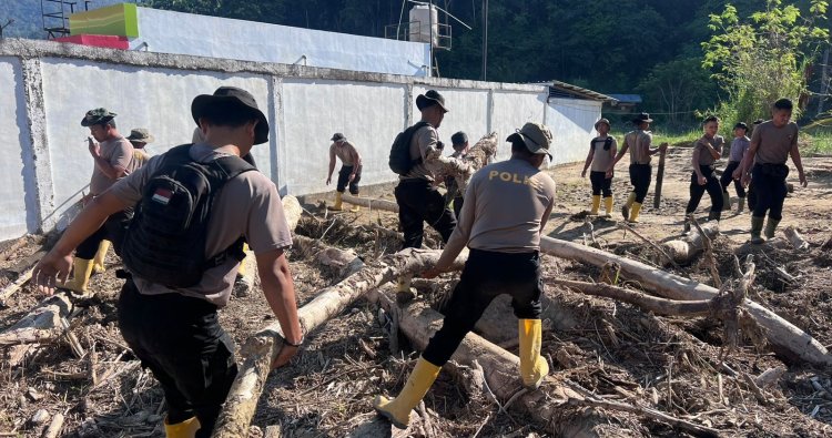 Polri terus berkomitmen dalam melakukan percepatan penanganan pasca-bencana banjir bandang yang melanda wilayah Sumatera Barat. Melalui Tim SAR Resimen II Pasukan Pelopor yang sedang melaksanakan BKO di Polda Sumbar, aksi pembersihan material sisa bencana dilakukan di sepanjang aliran sungai Desa Kampung Tengah, Kecamatan Palembayan, Kabupaten Agam, Selasa (27/1).